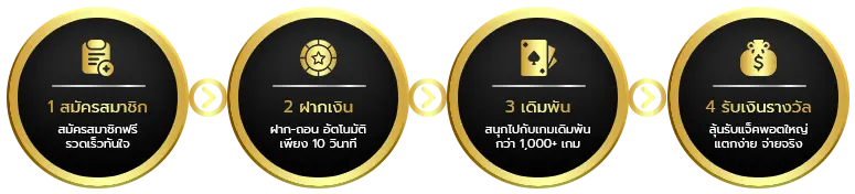 ตอบ : - เข้าเว็บไซต์ กดปุ่มสมัครสมาชิก - กรอกข้อมูลส่วนตัวให้ครบถ้วน - ยืนยันเบอร์โทรศัพท์ - ฝากเงินเข้าระบบ - เริ่มเล่นเกมได้ทันที
